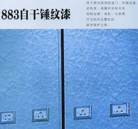 企業(yè): 湖南湘江涂料集團(tuán)有限公司 S16-36各色自干錘紋漆(分裝) 產(chǎn)品簡(jiǎn)介 以羥基樹脂、特殊顏料、助劑、溶劑組成的漆料為羥基組份,以異氰酸酯為另一組份的雙組份自干涂料。 主要特性 花紋清晰、立體感強(qiáng),干燥快,硬度高,機(jī)械性能好,附著力強(qiáng),裝飾性能強(qiáng),保護(hù)性能好。 主要用途 用于各類機(jī)械、輕重設(shè)備、機(jī)床、儀器、風(fēng)機(jī)、水... 詳細(xì)>> |