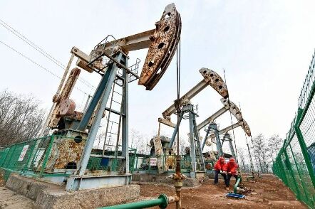 ▲山西華新燃氣集團工作人員在山西省沁水縣河頭村的一處煤層氣抽采現(xiàn)場進行井口維護。