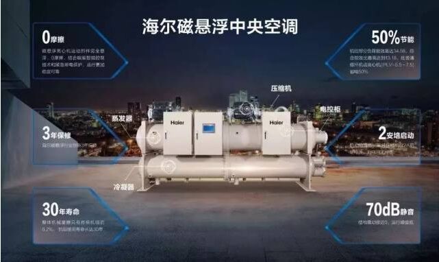 譬如,在地產(chǎn)行業(yè),海爾首創(chuàng)“三全”解決方案體系,以家庭、商務(wù)、場所、生產(chǎn)、移動等生產(chǎn)生活空間,溫、濕、凈、氧、靜、風(fēng)、味等7大維度,覆蓋用戶的N個生活場景,借助完整的生態(tài)體系,為用戶打造個性極致的空氣體驗。海爾中央空調(diào)已經(jīng)不再是一個簡單的硬件,而是關(guān)乎品質(zhì)生活的生態(tài)環(huán)節(jié)。 其中,以磁懸浮空調(diào)為核心的節(jié)能解決方案,能夠做到節(jié)能50%,省電一半,在國內(nèi)市場,海爾磁懸浮中央空調(diào)占據(jù)50.1%市場份額。在其帶領(lǐng)下,行業(yè)35家企業(yè)紛紛加入磁懸浮陣營。推動綠色地產(chǎn)轉(zhuǎn)型升級,也打開了中央空調(diào)技術(shù)升級新的空間。