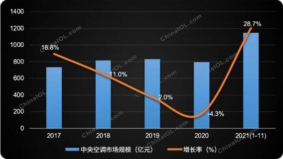 2017-2021年中央空調(diào)市場規(guī)模及增長趨勢