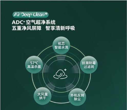 該系統(tǒng)搭載機芯智能水洗技術(shù),通過凝露捕塵、結(jié)霜鎖塵、化霜除塵等過程,主動捕捉空氣中的水分,深度清潔蒸發(fā)器。在機芯智能水洗完成后,57℃高溫除菌模塊可對蒸發(fā)器 進行烘干持續(xù)35分鐘,進一步除菌。最后,通過室內(nèi)機風(fēng)機運轉(zhuǎn),吹走換熱器的余熱,保持換熱器干燥,抑制細菌滋生;室外風(fēng)機則反向震蕩運轉(zhuǎn),持續(xù)100s徹底除去換熱器表面灰塵,提升換熱效果。此外,它還采用銀系抗菌防霉過濾網(wǎng),可有效抑制金色葡萄球菌、大腸桿菌等的繁殖,抗菌性能可達99%以上,讓每個家庭每天都能呼吸到更健康的空氣。