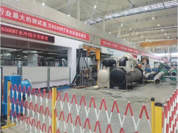 據(jù)介紹,該實驗室最大測試能力高達(dá)6500RT,是一個能夠“一室三用”的多系統(tǒng)綜合實驗室,主要針對大型水冷離心機、螺桿機的整機系統(tǒng)運行、性能、可靠性等功能進(jìn)行檢測。
