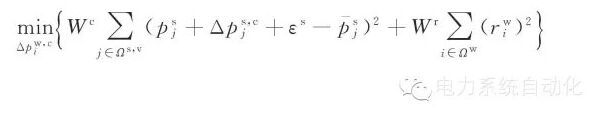 其中第1個(gè)目標(biāo)確保斷面運(yùn)行安全, 第2個(gè)目標(biāo)確保風(fēng)電場(chǎng)公平調(diào)度; 約束條件主要包括:風(fēng)電場(chǎng)有功校正量對(duì)斷面有功變化的靈敏度約束、避免反調(diào)的風(fēng)電有功調(diào)節(jié)方向約束、風(fēng)電場(chǎng)有功出力約束、風(fēng)電送出斷面可行約束等。 4、第二階段決策—最小棄風(fēng)控制: 基于充分利用電網(wǎng)的風(fēng)電接納空間, 恢復(fù)被限風(fēng)電: