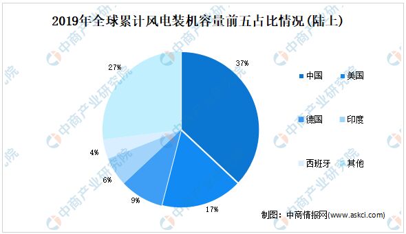 中國(guó)是全球風(fēng)電裝機(jī)容量第一大國(guó)。數(shù)據(jù)顯示,截至2019年,中國(guó)累計(jì)風(fēng)電裝機(jī)容量為236.40吉瓦,占全球累計(jì)風(fēng)電裝機(jī)容量的36.34%。其中,陸上累計(jì)裝機(jī)容量229.56吉瓦,排名全球第一;海上累計(jì)裝機(jī)容量6.84吉瓦,排名世界第三。