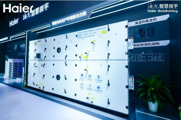 展會現(xiàn)場,海爾智慧樓宇儲能溫控產(chǎn)品設(shè)計總監(jiān)王軍分享了其儲能全產(chǎn)業(yè)鏈解決方案,屬行業(yè)首例。具體來看,在儲能電池生產(chǎn)場景中,推出轉(zhuǎn)輪除濕+高溫?zé)岜迷偕囊惑w式熱回收集成方案,達到-40℃到-80℃的露點溫度,保障安全的生產(chǎn)環(huán)境。此外,該方案中應(yīng)用的熱泵技術(shù)更加節(jié)能環(huán)保,實現(xiàn)系統(tǒng)節(jié)能50%,也降低了企業(yè)運行成本。