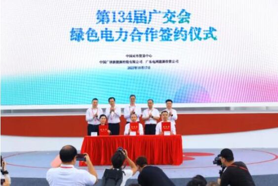 10月17日,第134屆中國進出口商品交易會(以下簡稱廣交會)綠色電力合作簽約儀式在廣交會展館舉行,中國廣核新能源控股有限公司(以下簡稱中廣核新能源)與中國對外貿(mào)易中心、廣東電網(wǎng)有限責任公司達成綠色電力交易合作,實現(xiàn)廣交會開辦以來首次綠色用電全覆蓋。中廣核新能源總經(jīng)理助理陳勝利出席并見證簽約儀式。