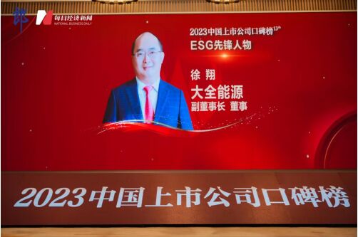 11月17日,由每日經(jīng)濟(jì)新聞發(fā)起的“中國上市公司口碑榜”評選獲獎名單于第十二屆中國上市公司高峰論壇上正式揭曉。大全能源副董事長徐翔憑借其帶領(lǐng)企業(yè)ESG治理實(shí)踐,持續(xù)深化企業(yè)可持續(xù)發(fā)展的卓越表現(xiàn),榮獲2023年度“ESG先鋒人物獎”。此次ESG先鋒人物獎的評選,評價(jià)體系立足于自身海量結(jié)構(gòu)化數(shù)據(jù)、AI機(jī)器學(xué)習(xí)技術(shù)等,綜合上市公司各類公告、媒體輿情、政府機(jī)構(gòu)及第三方等數(shù)據(jù)來源,形成指標(biāo)數(shù)據(jù)庫;同時(shí)運(yùn)用多種算法實(shí)現(xiàn)指標(biāo)數(shù)據(jù)的提取、計(jì)算和評級結(jié)果輸出,加工成評價(jià)結(jié)果數(shù)據(jù)庫,最終實(shí)現(xiàn)上市企業(yè)的ESG績效的有效量化,獎項(xiàng)的科學(xué)性和含金量廣受各界認(rèn)可。作為今年新設(shè)重磅獎項(xiàng)之一,“ESG先鋒人物獎”的關(guān)注度與份量不言而喻。此次徐翔獲此殊榮,一方面,源于徐翔以先進(jìn)的ESG理念引領(lǐng)大全能源發(fā)展的出色實(shí)踐;另一方面,也正是業(yè)界對于大全能源積極踐行ESG可持續(xù)發(fā)展、推動綠色轉(zhuǎn)型先鋒地位的高度認(rèn)可。