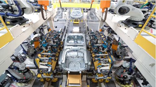 這座占地面積1174畝,建筑面積34.5萬平方米,規(guī)劃年產(chǎn)能30萬輛乘用車的“超級(jí)生產(chǎn)車間”里,由AGV串聯(lián)起的各生產(chǎn)島臺(tái)有序作業(yè),實(shí)現(xiàn)大規(guī)模柔性定制和混線排產(chǎn),同時(shí)生產(chǎn)領(lǐng)克01、01全球版、領(lǐng)克05、領(lǐng)克08車型。