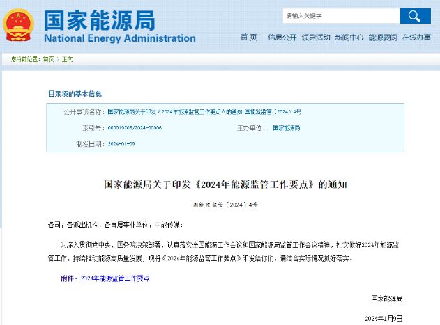 1月22日,國家能源局發(fā)布通知,印發(fā)《2024年能源監(jiān)管工作要點》(以下簡稱《要點》)。