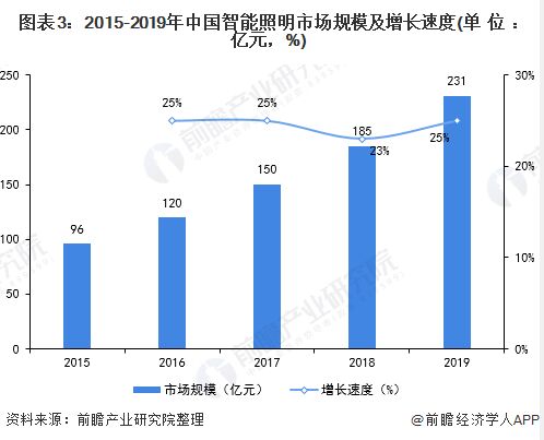 智能照明市場規(guī)模不斷擴(kuò)大 隨著消費(fèi)者對(duì)照明光效、個(gè)性化照明、節(jié)能環(huán)保等要求的提升,智能照明作為最行之有效的解決方案,將成為行業(yè)發(fā)展的必然趨勢。此外,近年來智能家居需求不斷增長,智能照明作為智能家居的切入點(diǎn)之一,受到照明企業(yè)以及智能控制企業(yè)的熱捧。2019年,中國智能照明市場規(guī)模約為231億元,同比增長約25%,逐步駛?cè)搿鞍l(fā)展快車道”。