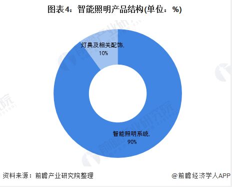 智能照明系統(tǒng)占據(jù)大部分市場份額 從產(chǎn)品結(jié)構(gòu)看,智能照明產(chǎn)品主要是智能照明系統(tǒng),占整體銷售市場的份額約為90%,燈具和相關(guān)配件占比則為10%。目前,智能照明打開了行業(yè)長期成長空間,LED智能照明產(chǎn)品的ASP和附加值將得到提升,其發(fā)展空間遠(yuǎn)大于傳統(tǒng)照明產(chǎn)品,快速替換期過后的長期成長動(dòng)能來源得以解決。