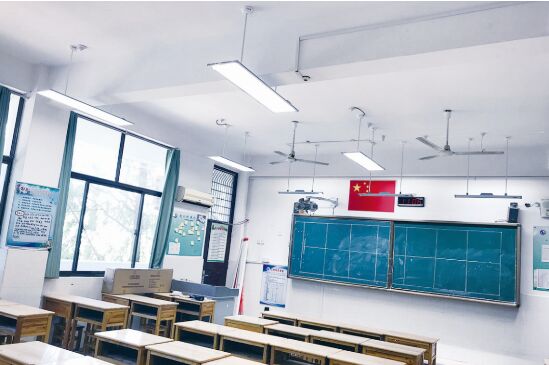 在健康照明方面,“關(guān)注基礎(chǔ)裝備,助力健康成長(zhǎng)”工程投入了352.6萬(wàn)元,將惠及14所學(xué)校,改善159間教室的照明環(huán)境。今年暑假,徐州市開始在部分學(xué)校推廣使用健康節(jié)能護(hù)眼燈(即LED面板燈),進(jìn)一步改善學(xué)校教室照明條件,保護(hù)學(xué)生視力,控制近視新發(fā)病率,改善近視學(xué)生視力。在徐州市第十三中學(xué),每間教室都安裝了9盞健康節(jié)能護(hù)眼燈和3盞黑板燈,打開電源后,柔和的燈光便籠罩在桌面和黑板上。