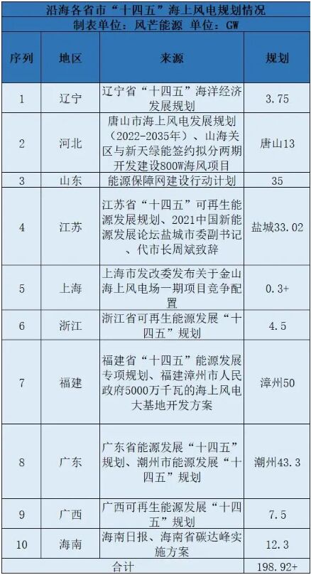 沿海各省市海上風電“十四五”規(guī)劃陸續(xù)出爐。