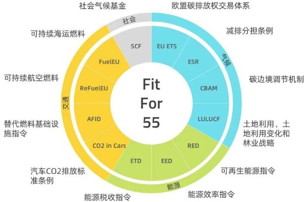 ▲碳關稅和歐盟碳排放總量控制與交易體系,均是歐盟“Fit for 55”減排計劃的核心部分之一,其目標是使得歐盟到2030年溫室氣體排放量較1990年減少55%,到2050年實現(xiàn)碳中和