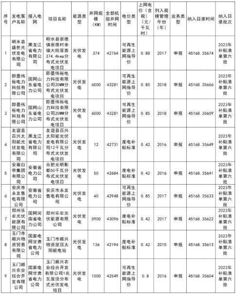 | 國(guó)家電網(wǎng)公布2023年第六批可再生能源發(fā)電補(bǔ)貼項(xiàng)目名單 |