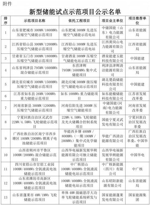國(guó)家能源局綜合司關(guān)于公示新型儲(chǔ)能試點(diǎn)示范項(xiàng)目的通知