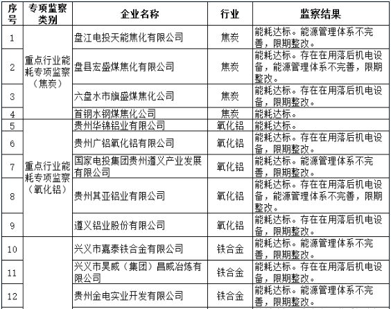 關(guān)于2021年貴州省國(guó)家工業(yè)專(zhuān)項(xiàng)節(jié)能監(jiān)察結(jié)果的公示