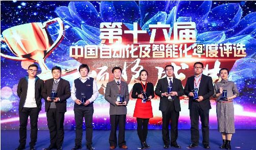 倍福北京區(qū)域銷售經理安會民(右二)代表公司上臺領獎。