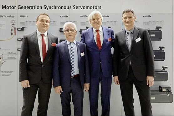 從左至右:Michael Pfister, 德國倍福自動化有限公司驅(qū)動技術(shù)產(chǎn)品經(jīng)理;Erwin Fertig,F(xiàn)ertig Motors 公司董事總經(jīng)理兼聯(lián)合創(chuàng)始人之一;Hans Beckhoff,德國倍福自動化有限公司所有者兼總裁以及第二位 Fertig Motors 公司創(chuàng)始人;Dietmar Hamberger,于 2018 年 2 月 13 日新生產(chǎn)線正式啟動生產(chǎn)之日起擔任 Fertig Motors 公司總經(jīng)理。