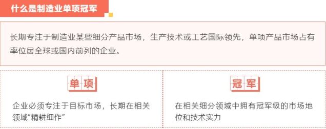 制造業(yè)單項(xiàng)冠軍旨在引導(dǎo)制造業(yè)企業(yè)專注創(chuàng)新和質(zhì)量提升,在更多細(xì)分產(chǎn)品領(lǐng)域形成全球市場、技術(shù)等方面領(lǐng)先的單項(xiàng)冠軍地位,提升我國制造業(yè)國際競爭力,促進(jìn)我國產(chǎn)業(yè)整體在全球產(chǎn)業(yè)鏈中邁向高端。