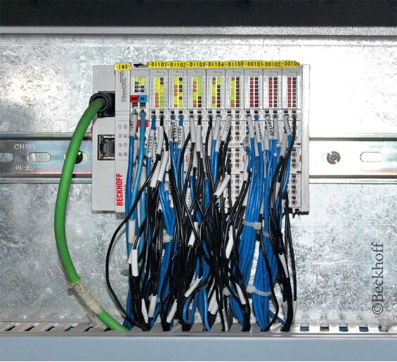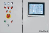 控制柜中的嵌入式控制器與用作人機(jī)界面的倍福控制面板 CP2912 相連