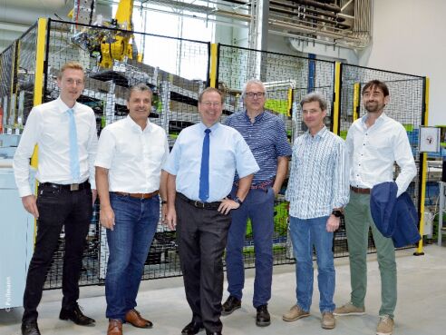 大家對機械工程與工業(yè)工程的成功整合非常滿意(左起):Rainer Hobiger(珀爾曼公司設施管理部主管)、Manfred Jäger(珀爾曼公司 Vitis 工廠廠長)、Robert Pollmann(珀爾曼國際公司管理合伙人)、Thomas Führer(Stiwa 公司樓宇自動化部負責人)、Christian Pillwein(倍福奧地利分公司樓宇自動化行業(yè)經(jīng)理)以及 Harald Setka(Peneder 公司建筑師)