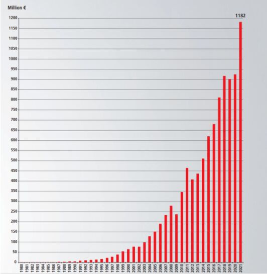 Hans 將公司取得的歷史性成就大部分歸功于“和諧發(fā)展”戰(zhàn)略。倍福在通過收購小型企業(yè)進(jìn)行擴(kuò)張時(shí),更注重的是他們能夠提供的技術(shù),而不是他們的市場份額!肮菊谝钥沙掷m(xù)的方式發(fā)展。在過去的 22 年里,我們的年均增長率始終保持在 15% 左右。我們的業(yè)務(wù)模式具有高可擴(kuò)展性,我們現(xiàn)在希望進(jìn)一步擴(kuò)大公司規(guī)模!盚ans 說道。到 2022 年年底,倍福將力爭實(shí)現(xiàn)增長 20-23% 的目標(biāo),全球營收或?qū)⑦_(dá)到 14.5 億歐元。