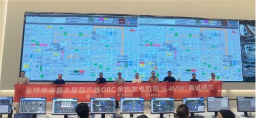 9月22日,三房巷聚酯余熱發(fā)電項(xiàng)目落成儀式成功舉行。本項(xiàng)目采用天加Exergy高效徑向離心透平ORC發(fā)電機(jī)組,總裝機(jī)為6.4MW,是全球單體最大聚酯產(chǎn)線ORC余熱發(fā)電機(jī)組、中國(guó)最大ORC余熱發(fā)電機(jī)組。