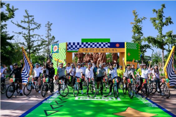 來自各地的智慧城市專家學者、媒體嘉賓以及生態(tài)城居民一起輕裝上陣,以低碳騎行的方式,開啟一段回顧與展望之旅。從起點出發(fā),一路出現(xiàn)在視野中的季景智慧活力社區(qū)、生態(tài)城地標彩虹橋、沿途如大風車般的風力發(fā)電機組,無一不訴說著發(fā)生在這片曾是鹽堿地上的創(chuàng)新故事。它曾經(jīng)荒蕪,現(xiàn)在卻匯集了 13 萬年輕人與歡樂的家庭。
