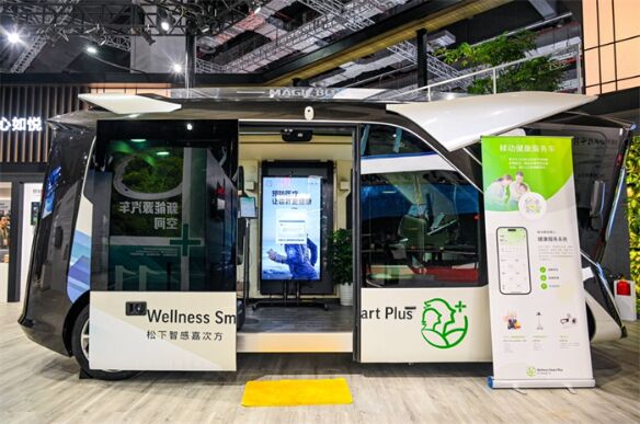 在展會(huì)現(xiàn)場(chǎng)還有一輛國(guó)內(nèi)首展的多功能自動(dòng)駕駛電動(dòng)車(chē),這是松下與廣汽共同打造“未來(lái)城市”服務(wù)的新場(chǎng)景,基于廣汽Magic box自動(dòng)駕駛概念車(chē)的平臺(tái),車(chē)上搭載了松下和歐姆龍的健康設(shè)備,提供體檢、康復(fù)、問(wèn)診等健康服務(wù),可移動(dòng)觸達(dá)住宅社區(qū)。