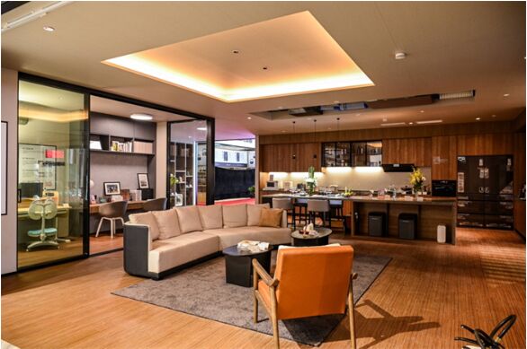 高配置住宅空間融合了多款全球首發(fā)家電產(chǎn)品,如云境系列油煙機(jī)、燃?xì)庠睢⒈、微蒸烤箱等,空間的智能性上有AI智慧屏開(kāi)關(guān),可實(shí)時(shí)探測(cè)室內(nèi)光照、濕度、PM2.5含量等的七合一傳感器,可感受特定區(qū)域人體移動(dòng)的被動(dòng)紅外檢測(cè)器;國(guó)內(nèi)首發(fā)改善水質(zhì)的墨玉系凈水系統(tǒng);進(jìn)博會(huì)首展改善空間空氣質(zhì)量的二代6恒氣候站;小戶型解決方案上則展示了松下有效利用動(dòng)線規(guī)劃、收納以及嵌入性家電等特點(diǎn)的空間。