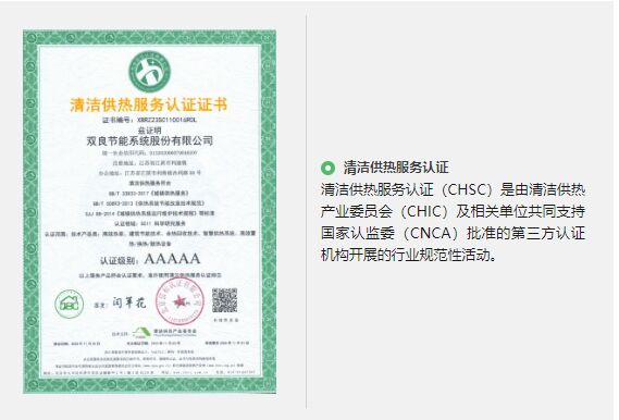 清潔供熱服務(wù)認(rèn)證是中國清潔供熱產(chǎn)業(yè)首個(gè)服務(wù)認(rèn)證,對于提升清潔供熱企業(yè)服務(wù)質(zhì)量、規(guī)范市場秩序、促進(jìn)中國清潔供熱產(chǎn)業(yè)持續(xù)健康發(fā)展具有重大意義。雙良獲得清潔供熱服務(wù)5A級認(rèn)證,體現(xiàn)了行業(yè)對雙良節(jié)能各項(xiàng)綜合優(yōu)勢的高度認(rèn)可和肯定。