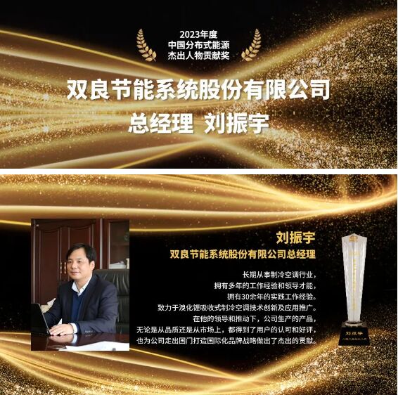 雙良節(jié)能系統(tǒng)股份有限公司總經(jīng)理劉振宇榮獲“中國分布式能源杰出人物貢獻獎”殊榮。