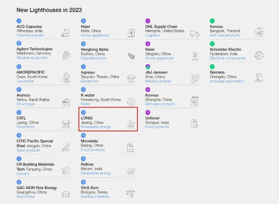 12月14日,世界經(jīng)濟(jì)論壇(WEF)公布最新一批“燈塔工廠”名單,全球共21座工廠新入選,隆基綠能嘉興基地是全球光伏行業(yè)唯一入圍工廠,這意味著全球光伏行業(yè)首個(gè) “燈塔工廠”誕生,隆基綠能在智能制造和數(shù)字化領(lǐng)域已經(jīng)達(dá)到了世界領(lǐng)先水平,是引領(lǐng)全球制造業(yè)發(fā)展趨勢的“燈塔”。