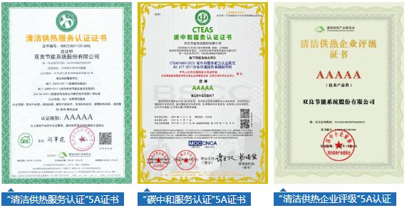 憑借多年在清潔供冷供熱領(lǐng)域的綜合實(shí)力,雙良節(jié)能榮獲“清潔供熱服務(wù)認(rèn)證”5A證書、“碳中和服務(wù)認(rèn)證”5A證書、首批中國(guó)清潔供熱產(chǎn)業(yè)“清潔供熱企業(yè)評(píng)級(jí)”5A級(jí)認(rèn)證。
