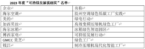 其中,海爾膠州空調(diào)綠色低碳工廠實(shí)踐、美的綠電行動(dòng)、加西貝拉高效變頻壓縮機(jī)綠色工廠、海爾冰箱綠色智造園區(qū)、博西家電可持續(xù)發(fā)展行動(dòng)、GMCC美芝綠色工廠、錢江制冷壓縮機(jī)現(xiàn)代化智能工廠獲得“可持續(xù)發(fā)展優(yōu)創(chuàng)獎(jiǎng)”。12款產(chǎn)品或解決方案獲得“低碳先鋒產(chǎn)品獎(jiǎng)”。