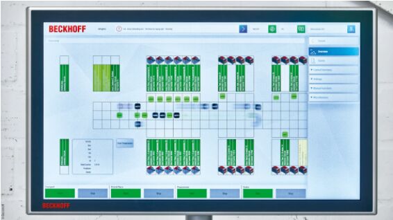 該系統(tǒng)是一個(gè)能夠很好地說明基于 PC 的控制技術(shù)可以用來執(zhí)行各種任務(wù)和功能的典型例子。除了一臺(tái) C6670 控制柜式工業(yè)服務(wù)器負(fù)責(zé)控制和協(xié)調(diào) 100 塊平面模塊以及其上的 33 個(gè)動(dòng)子之外,還有 10 臺(tái) C6032 超緊湊型工業(yè) PC 用于控制其它系統(tǒng)組件。Delta 機(jī)器人的自動(dòng)化通過 AX8000 多軸伺服系統(tǒng)和 AM8000 伺服電機(jī)實(shí)現(xiàn)!拔覀兪褂 AMI8100 驅(qū)控一體伺服電機(jī)送入和彈出托盤,因?yàn)樗鼈兘Y(jié)構(gòu)非常緊湊,只需 EtherCAT 和 48 V 電壓即可運(yùn)行!盪lrich Brockhaus 說道。編程工站中的 AA1000 線性執(zhí)行機(jī)構(gòu)用于接觸端子模塊;測試工站中的 AA3000 電動(dòng)缸用于載入端子模塊載具。整個(gè)系統(tǒng)的安全都由 TwinSAFE 保障。TwinCAT Vision 可以捕捉到 DataMatrix 碼。車間內(nèi)共有四個(gè)測試柜,每個(gè)測試柜中都安裝了約 40 個(gè) ELM 系列的 EtherCAT 測量端子模塊。此外,測試柜中還使用了各種 EL 系列的 EtherCAT 端子模塊!霸谶@個(gè)項(xiàng)目中,基于 PC 的控制技術(shù)為我們帶來了很多便利,并為我們留下了進(jìn)一步擴(kuò)展的選項(xiàng)!盡ichael Golz 說道。