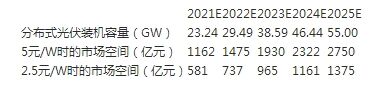 按照CPIA對(duì)分布式光伏新增容量的預(yù)測(cè),樂(lè)觀情況下,我國(guó)到2025年的分布式光伏新增裝機(jī)容量為55GW,如果按5元/W的造價(jià),到2025年,我國(guó)分布式光伏的市場(chǎng)空間將達(dá)到2750億元,呈現(xiàn)千億級(jí)的市場(chǎng)潛力,公司積極發(fā)展分布式光伏項(xiàng)目,具有較大的成長(zhǎng)空間。 樂(lè)觀情況下2021-2025年我國(guó)分布式光伏市場(chǎng)空間預(yù)測(cè)
