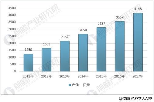 2011-2017年中國節(jié)能服務(wù)產(chǎn)值情況