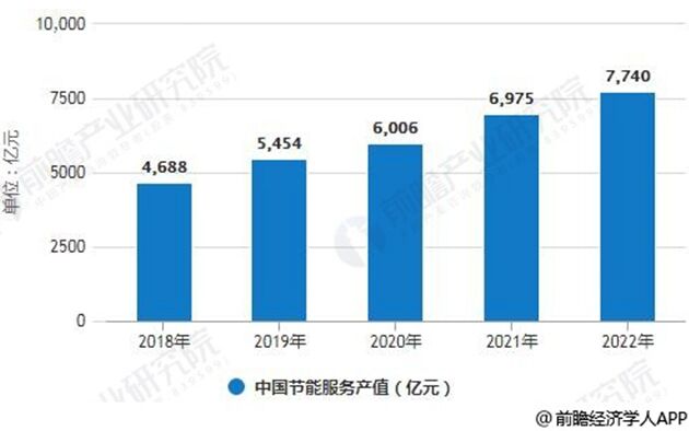 數(shù)據(jù)來源:前瞻產(chǎn)業(yè)研究院整理 2018-2022年中國節(jié)能服務(wù)產(chǎn)值統(tǒng)計情況及預(yù)測