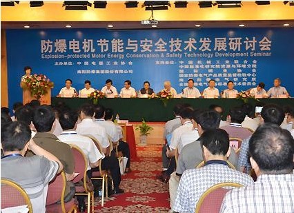 由中國電器工業(yè)協(xié)會和南陽防爆集團股份有限公司聯(lián)合主辦的防爆電機節(jié)能與安全技術(shù)發(fā)展研討會在南陽隆重召開。 上午8時30分,金凱悅酒店四樓會議大廳內(nèi),群賢畢至、高朋滿座。中國機械工業(yè)聯(lián)合會顧問、中國電器工業(yè)協(xié)會終身名譽會長、機械工業(yè)部原常務(wù)副部長陸燕蓀,中國工程院院士張鐵崗,國家能源局資源節(jié)約與科技裝備司副司長黃鸝,工業(yè)和信息化部運行監(jiān)測協(xié)調(diào)局副局長景曉波、國家煤礦安全監(jiān)察局科技裝備司副司長彎效杰,財政部經(jīng)濟建設(shè)司能源處副處長向弟海,中國機械工業(yè)聯(lián)合會執(zhí)行副會長兼秘書長趙馳,中國電器工業(yè)協(xié)會會長邢玉久,中國電器工業(yè)協(xié)會副會長兼秘書長方曉燕,省工業(yè)和信息化廳副廳長趙為生,省發(fā)改委工業(yè)處處長郜義,英國PPI工程公司總裁Mike Robinson等單位的300多名領(lǐng)導(dǎo)和專家出席會議,市委書記李文慧、市長穆為民為研討會發(fā)來賀信,副市長崔軍代表市四大班子領(lǐng)導(dǎo)致辭并主持歡迎晚宴。