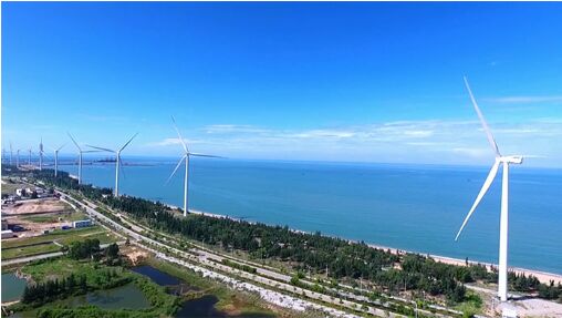 2021年,海南清潔能源電量占比由52%提升至59%,實(shí)現(xiàn)風(fēng)、光、水電實(shí)現(xiàn)全額消納。圖為沿海風(fēng)力發(fā)電。