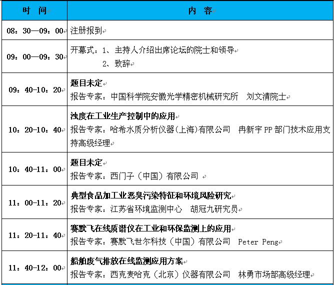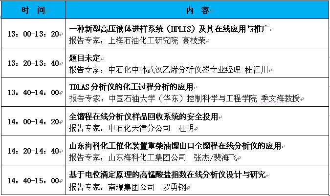 “第十二屆中國在線分析儀器應(yīng)用及發(fā)展國際論壇暨展覽會(huì)”大會(huì)日程表