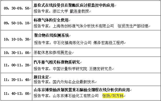 專題一:石油化工在線分析專題報(bào)告 時(shí)間:2019年11月14日(星期四)09:30-12:00 地點(diǎn):M2層南京廳 主持人:傅澤宏高級(jí)工程師