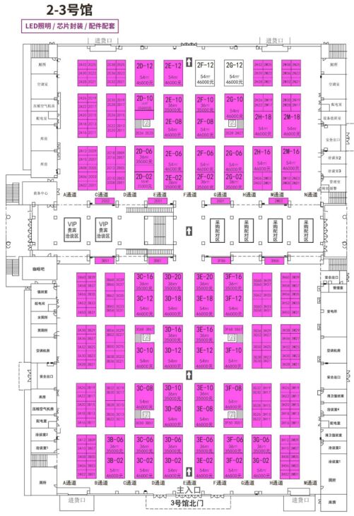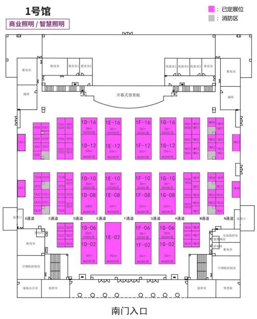 南門(mén)入口即為兩個(gè)180㎡的超大展臺(tái)