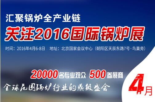IBE即國(guó)際鍋爐展(International Boiler Exhibition)已定于2016年在中國(guó)北京舉辦全球范圍鍋爐行業(yè)的鼎級(jí)盛會(huì),具體對(duì)觀眾開放時(shí)間為2016年4月6日、7日、8日的早上9點(diǎn)到下午5點(diǎn),地點(diǎn)為北京國(guó)家會(huì)議中心(鳥巢旁)。