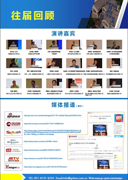 PV FORUM組委會(huì) 聯(lián)系人:王先生 021-6131 6254 網(wǎng)址:www-gs-cpem.com/nextpv