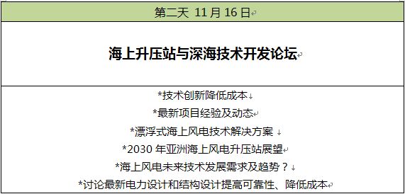 近幾年可謂是海上風(fēng)電行業(yè)“最好的時代”。據(jù)統(tǒng)計,到2025年亞太區(qū)海上風(fēng)電市場規(guī)模有望超602億美元。但形勢一片大好之下,卻是諸多隱患。補貼、成本控制、市場容量這些都是“風(fēng)電人”必須面對和解決的問題。在這種背景下,我們急需一個高效、務(wù)實、開放、國際化的平臺,共同探討、互通有無、加強彼此溝通,共同推動亞洲海上風(fēng)電行業(yè)的發(fā)展。 2018亞洲海洋風(fēng)能大會將立足于亞洲海洋風(fēng)能發(fā)展現(xiàn)狀及政策環(huán)境,為國內(nèi)外海上風(fēng)電開發(fā)商、服務(wù)商、EPC總包商等“風(fēng)電人”提供一個與業(yè)內(nèi)同仁及相關(guān)主管部門溝通交流的國際化平臺。OWA2018將重點討論中國大陸、臺灣、日本、印度、韓國、東南亞等區(qū)域的海上風(fēng)電開發(fā),運營優(yōu)化、深海技術(shù)探討及海上變電站設(shè)計與創(chuàng)新等話題。我們期待您能夠一起加入,與參會代表們互通有無,共同推動亞洲海上風(fēng)電市場的發(fā)展。 OWA2018,期待與您共享! OWA大會議程