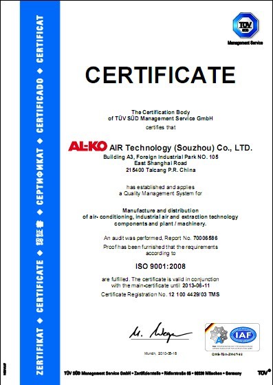 爱科太仓是德国爱科集团在华投资的一家全资子公司,工厂坐落在太仓市经济开发区,主要生产组合式空调机组、新风机组、空气净化机组及各种节能型空气净化处理设备。
